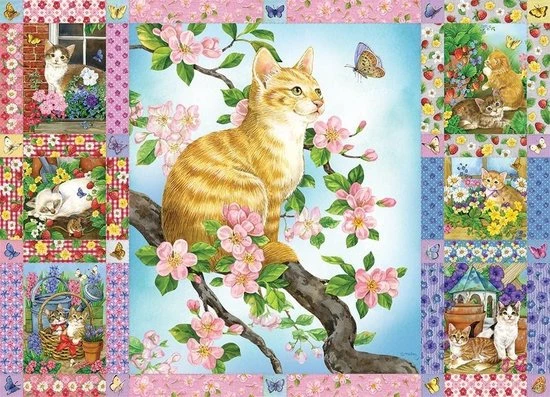 Cobble Hill puzzel Blossoms and Kittens Quilt – 1000 stukjes