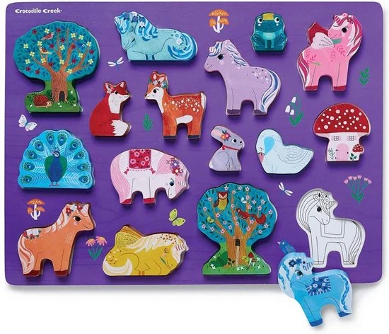 Crocodile Creek houten puzzel magische eenhoorn tuin – 16-delig