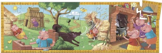 Uren puzzelplezier gegarandeerd met deze schattige puzzel van de 3 biggetjes en de wolf. Verpakt in een leuke silhouet doos.