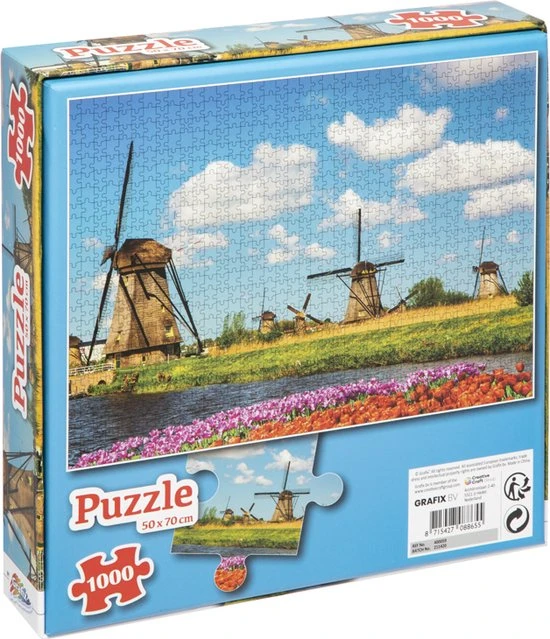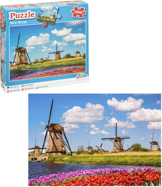 Ben jij ook zo onder de indruk van de typische windmolens in nederland? Wacht dan niet en bestel deze prachtige 1000-delige puzzel en start met puzzelen, vandaag voor 15.00u besteld is morgen in huis!