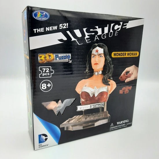 Super coole Wonder Woman 3D Puzzel van DC Comics. Het is een zogenaamde 3D Puzzle waarbij je met 72 puzzelstukjes een Wonder Woman Justice League standbeeld bouwt. Het gaat hier om de “Solid” versie die bestaat uit mooi gekleurde onderdelen.