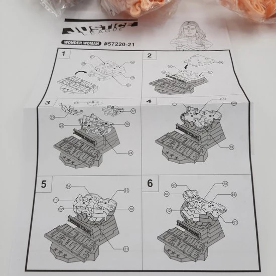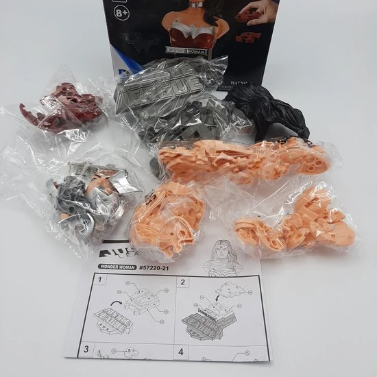 Zeer stevige kwaliteit (gewicht 245 gram). Is best even puzzelen om hem in elkaar te krijgen. Geschikt voor kinderen vanaf 8 jaar. Ook voor volwassen fans van Wonderwoman echt een leuk item voor bijvoorbeeld op je bureau of in de kast. Zie het dus ook als een beeld of verzamel figuur. Hoogte 16 cm.