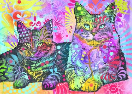 Puzzel Devoted 2 Cats 1000 stukjues Jolly Pets. Tekenaar, Dean Russo. Afmeting puzzel 50 x 70 cm. Standaard doos 37 x 27 x 5.5 cm.
