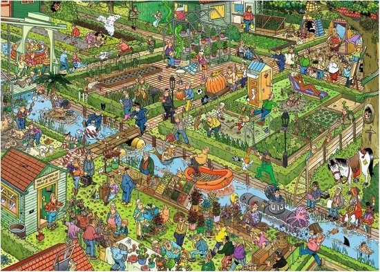 De volkstuintjes van Jan van Haasteren zijn zeker niet saai! Jan van Haasteren zorgt ervoor dat er van alles gebeurt in deze volkstuintjes. Jan van Haasteren puzzels zijn puzzels met veel kleur en details. Jan van Haasteren tekent al decennia lang humoristische platen die je steeds weer verrassen en laten lachen.