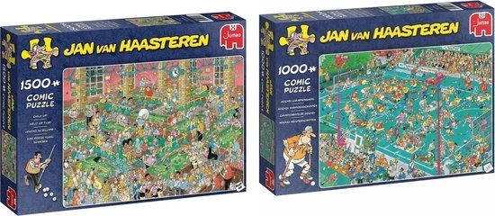 Jan van Haasteren tekent al decennia lang humoristische, kleurrijke platen met veel detail. De doorgewinterde fan zoekt in elke puzzel direct naar de haaienvin, hét handelsmerk van Jan. Om aan de grote vraag naar Jan van Haasteren puzzels te voldoen, wordt er ook getekend door ‘Jan van Haateren studio’ tekenaars. Samen met Jan werken deze tekenaars aan nieuwe dolkomische platen. In de Jumbo collectie vind je tientallen Jan van Haasteren puzzels van 150 tot 3000 stukjes. Heel veel puzzelplezier!