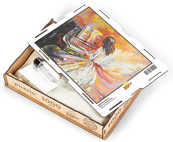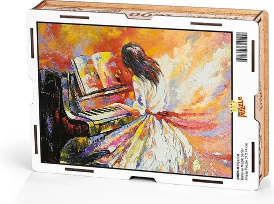 Pianist houten puzzel 1000 stukjes. Dankzij de lasersnijprecisie van 200 micron zijn alle onderdelen perfect op elkaar afgestemd.