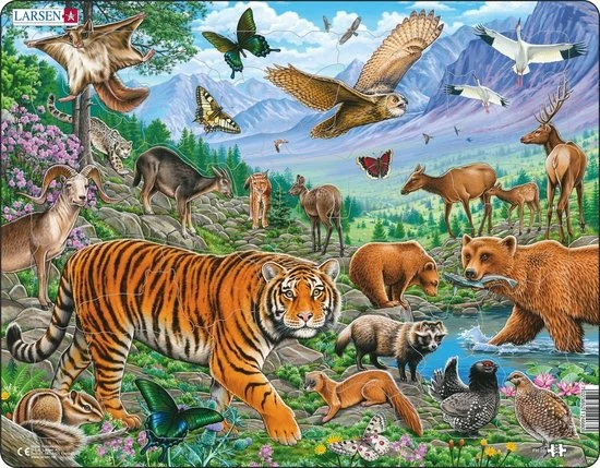 Met Larsen ontdek je allerlei mysteries van de wereld terwijl je aan het puzzelen bent. Met deze puzzel ontmoet je de dieren van Siberië. De stukjes leg je op een puzzelplaat, waardoor je jouw creatie makkelijk verplaatst of inlijst.