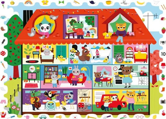 Ludattica Puzzels: DETECTIVE PUZZEL MIJN HUIS, 22,5×22,5x9cm, 108-delig, 50x70cm, Met Houten Vergrootglas, 5+