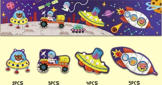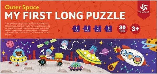 MiDeer Pinwheel Hoge Kwaliteit Mijn Eerste Lange Puzzel 94*21CM 30 Extra Grote En Dikke Stuks – Ruimte: Ruimteschip + Raket + Constellatie + Satelliet – Vloer Puzzel Voor 2 Jaar+ – Vloer Puzzel Voor Peuter Vanaf 2 Jaar