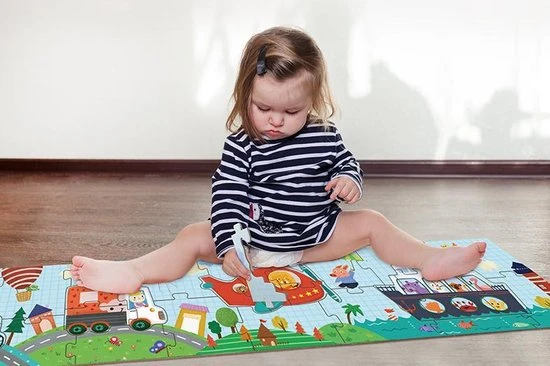 30 extra dikke kartonnen onderdelen.Mooie originele afbeeldingenMet zijn gemakkelijk te reinigen oppervlak ziet de puzzel er altijd als nieuw uit.Spannend druk stadsverkeer.Bevordert de oog-handcoördinatie en het vermogen om taken op te lossen.