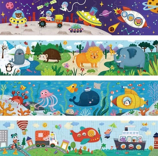 Deze grote vloerpuzzel met als thema Vervoer bestaat uit 30 puzzelstukken, afmeting 94 cm op 21 cm.Leuk en creatief puzzelen voor jong en oud!