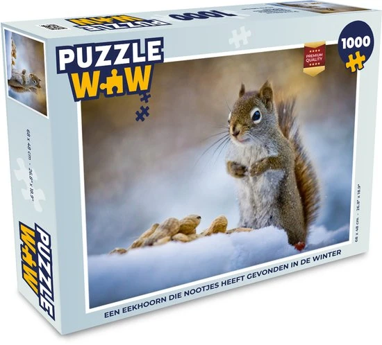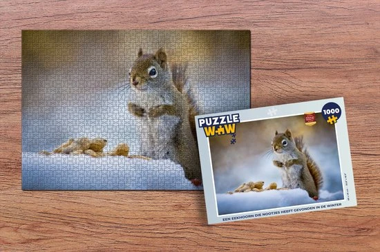 Puzzel 1000 stukjes – Eekhoorn – Noten – Sneeuw – Winter – Knaagdieren – Seizoenen – Puzzels