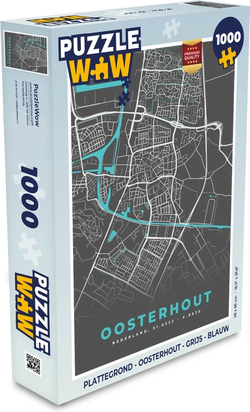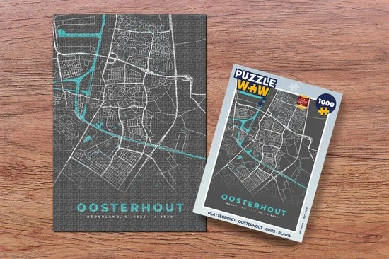 Puzzel 1000 stukjes – Plattegrond – Oosterhout – Grijs – Blauw – Puzzels