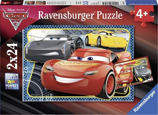 Ontsnap uit de realiteit en stap in de wereld van Ravensburger puzzels. Tijdens het puzzelen ontdekken kinderen hun grootse vaardigheden. De 2x 24 stukjes puzzels zijn ook een uitdaging voor de wat oudere kinderen. Vanwege het toenemende aantal stukjes blijven ze aanspraak doen op de concentratie en het geduld. Dankzij de met de hand gemaakte stansmessen is de vormvariatie van de stukjes oneindig. Kinderen vanaf 4 jaar zullen genieten van de Avonturen met Lightning McQueen puzzels met 24 stukjes. Ravensburger puzzels met 24 stukjes met als thema Disney Cars 3.