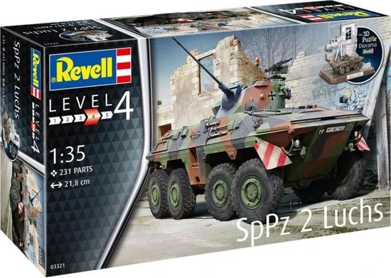 De drijvende verkenningstank Luchs werd van de jaren 1970 tot 2009 gebruikt in de tankverkenningsgevechten van de Bundeswehr. Via het 3D-puzzeldiorama dat in de kit is opgenomen, kan het model worden gepresenteerd in een authentiek landschap. Deze modeltank heeft een roterende toren en luiken die optioneel open of dicht kunnen worden gebouwd