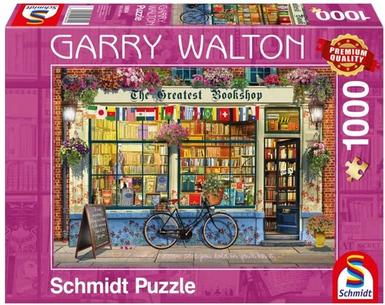 Premium Quality puzzel met een mooie afbeelding van Garry Walton, een nostaligische boekhandel.