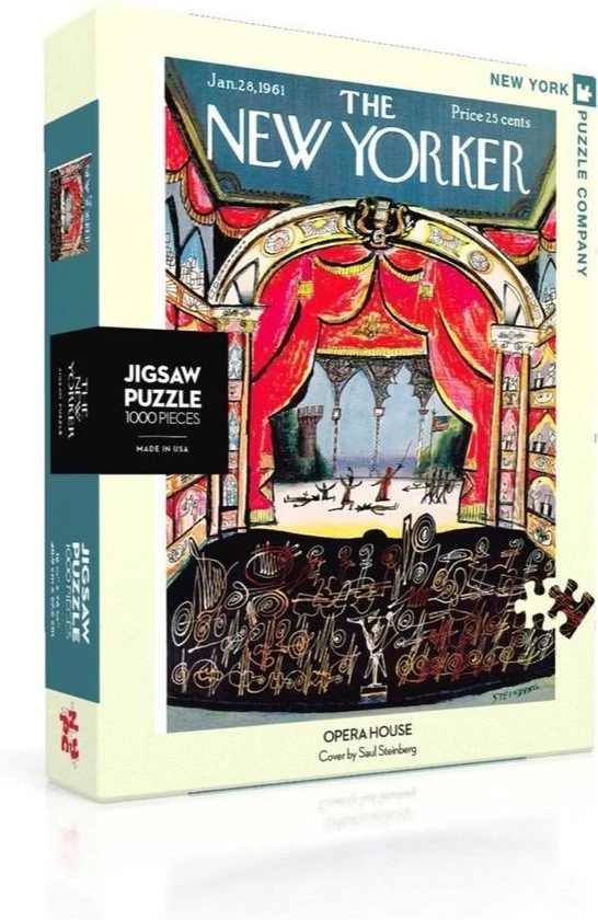 Een dramatisch moment op het podium tijdens deze opera van New York Puzzle Company. Rode gordijnen omlijsten sierlijk het tafereel terwijl het orkest speelt. De puzzel heeft 1000 stukjes en heeft een linnen stijl afwerking zodat de puzzel minder glimt. Aanbevolen leeftijd: 13+ jaar.