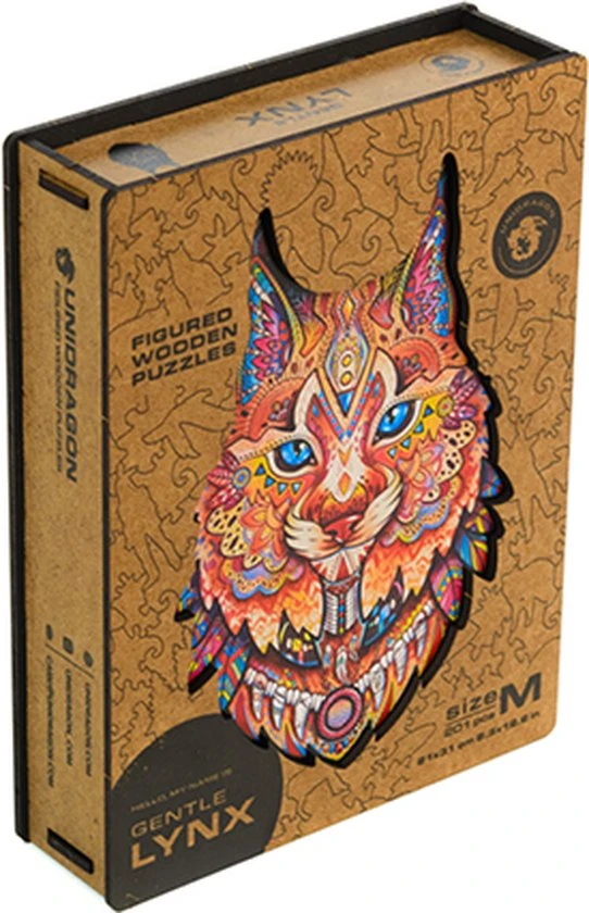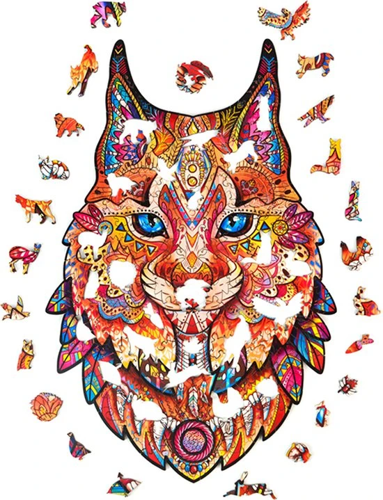 Nieuwe Figuurpuzzel Zachtaardige Lynx is een wereld van zachte kattenpootjes en scherpe klauwen. De geur van hout, nieuwe figuurtjes, een nieuw verhaal. Over een prooidier, wiens scherpe blik gemakkelijk een konijn, stokstaartje of kraai zal zien. Met zijn scherpe klauwen grijpt hij makkelijk vis uit het water.