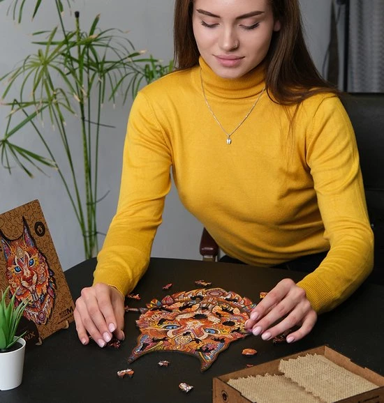 De puzzels zijn gemaakt van 3 mm dik, geperst HDF. Dit materiaal is milieuvriendelijk, van hoge kwaliteit en duurzaam. Als je klaar bent met het in elkaar zetten, leg de puzzel dan niet terug in de kast. Gebruik hem als interieurdecoratie! Wij hebben hiervoor een speciaal lijmsysteem ontwikkeld dat de puzzel in elkaar zet en aan de muur plakt.