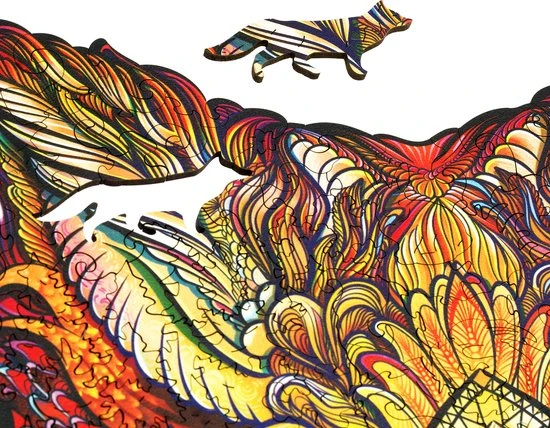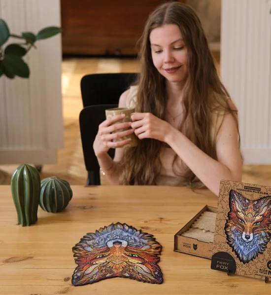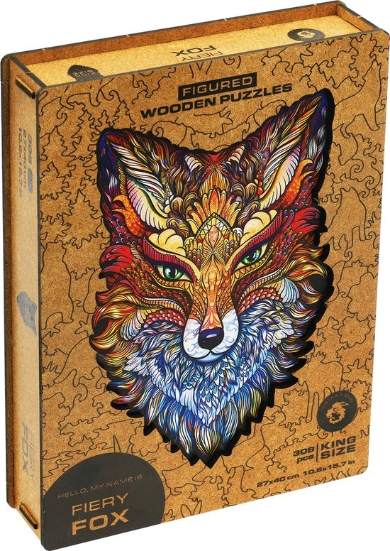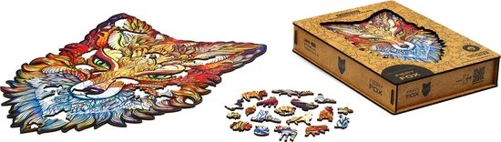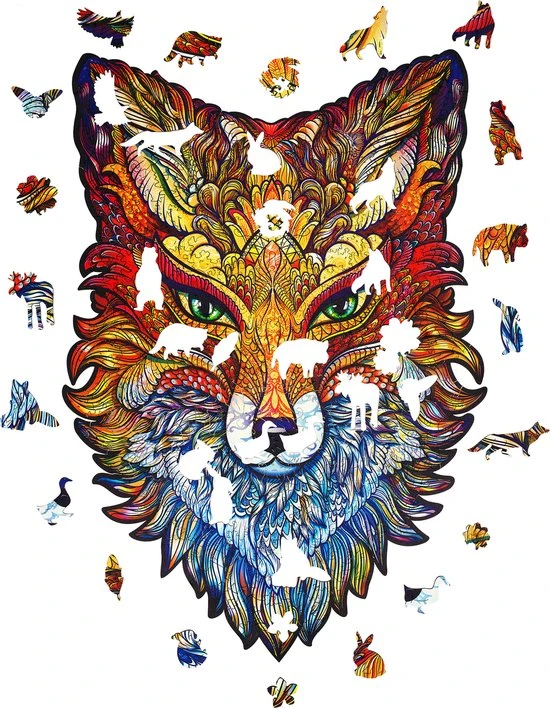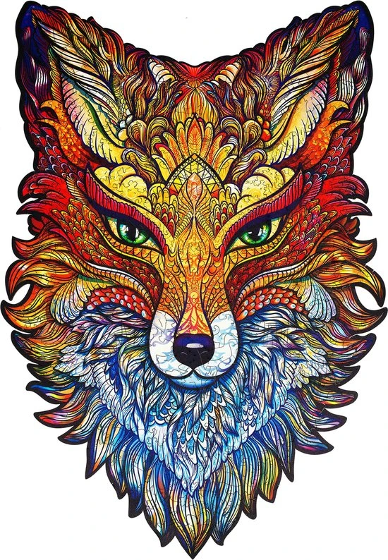 Ben je gefascineerd door vossen? Deze houten puzzel van UNIDRAGON met een artwork van een vurige vos heb je urenlang speelplezier. Het is een leuke puzzel om samen met het hele gezin te maken. Groene ogen fascineren je door hun diepte. De vacht glanst in de zonnestralen, als een laaiend vuur. Op het eerste gezicht schattig en charmant, maar laat je niet misleiden door haar schoonheid. De unieke puzzelstukjes hebben de vorm van verschillende dieren, bloemen en nog veel meer.